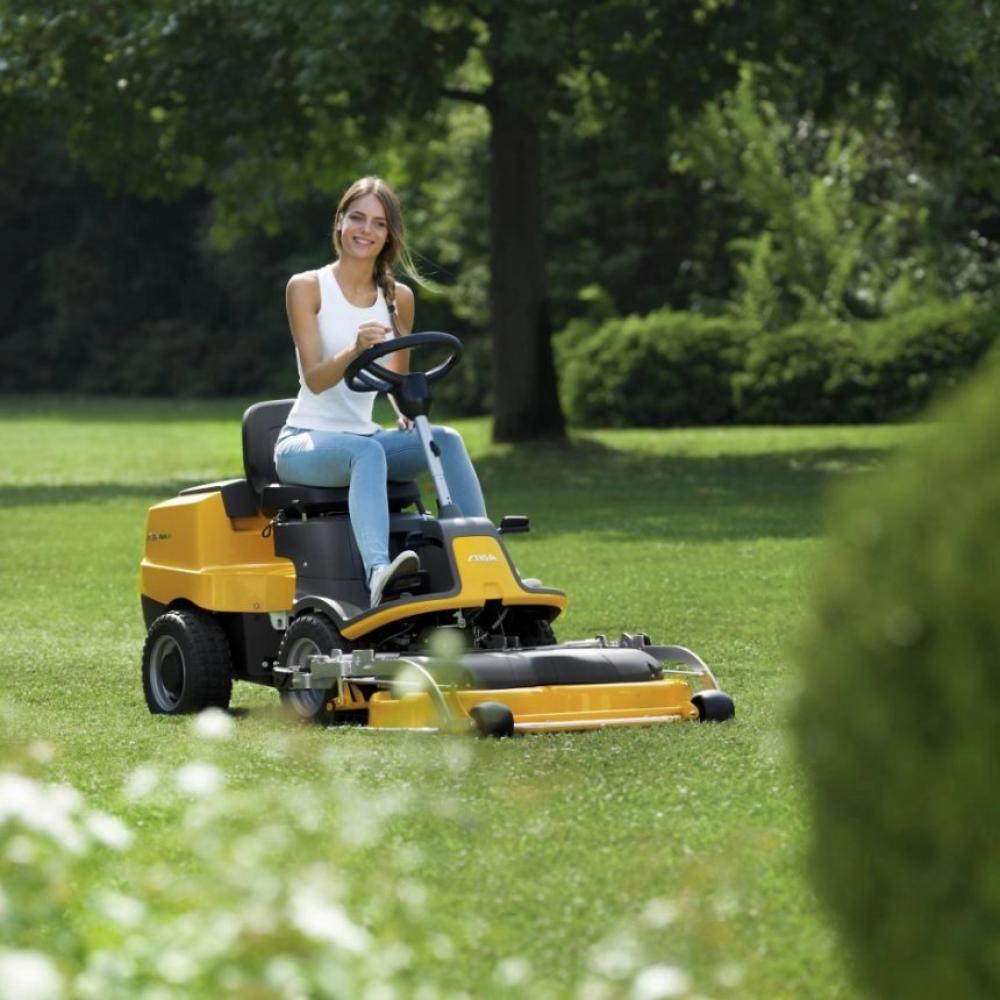 Райдеры управляются с сиденья, что делает их комфортными для длительной работы. Это особенно важно для больших участков, где требуется много времени на уход за газоном.